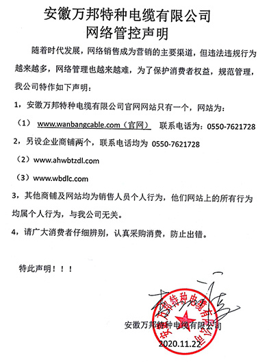 鄭重聲明:安徽萬邦特種電纜有限公司官方網站為:ycxqqz_chinacrane_net.chinaprp.com,除此之外無任何子網站或合作網站,其余均為假冒偽劣。電話:0550-7621728 13485756353 地 址:安徽省天長市滁州高新技術產業開發區經四路29號